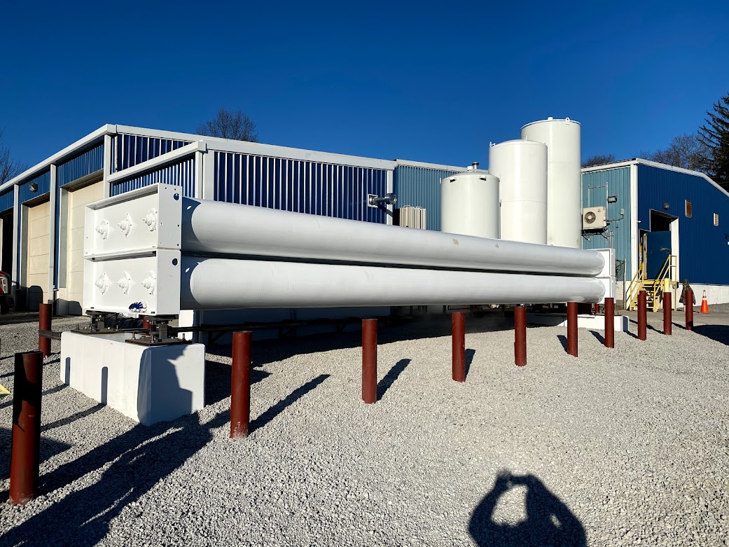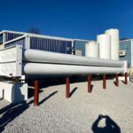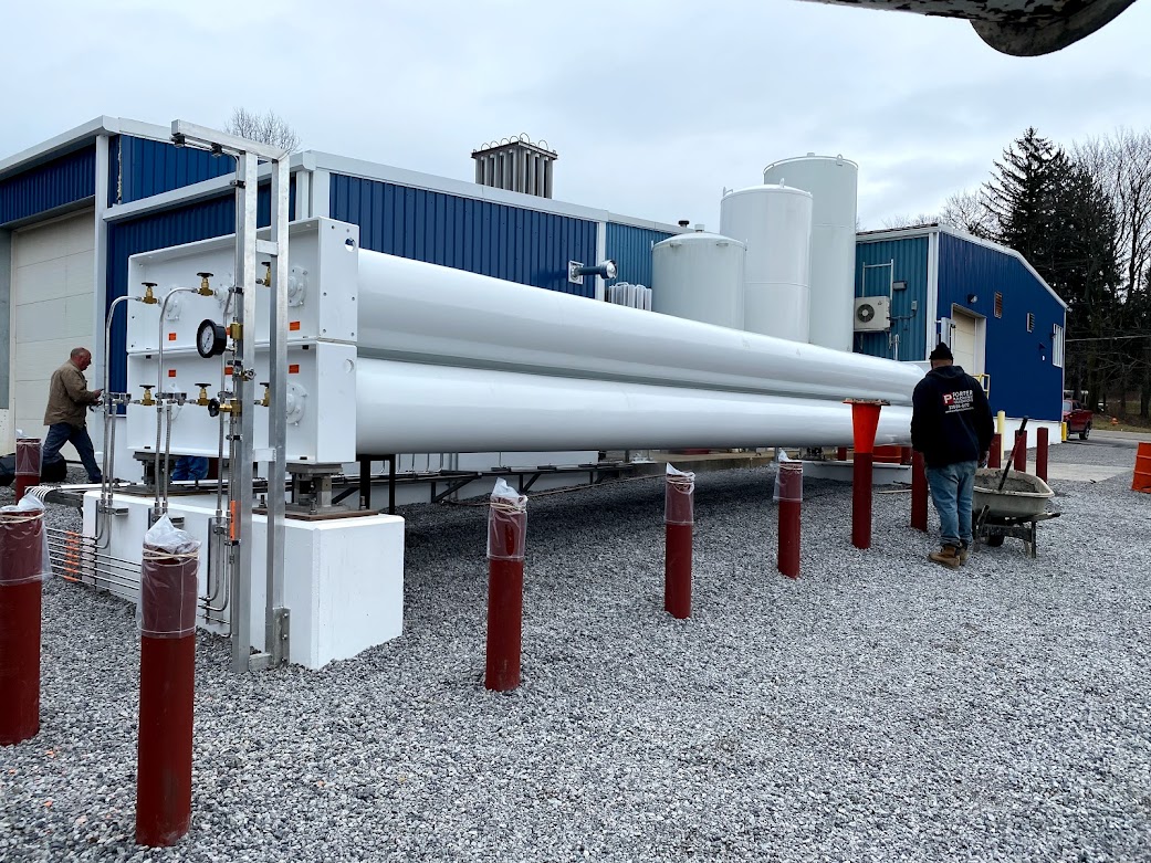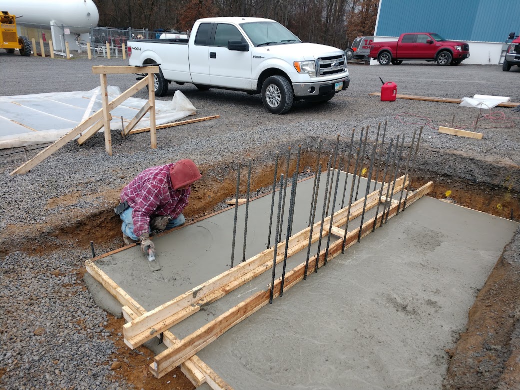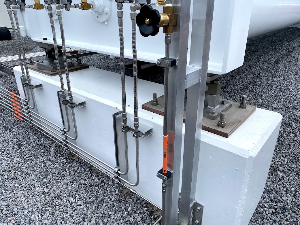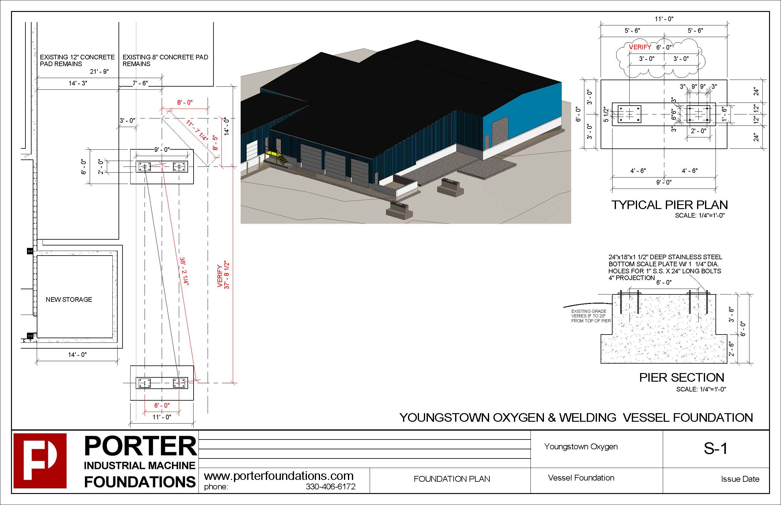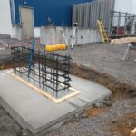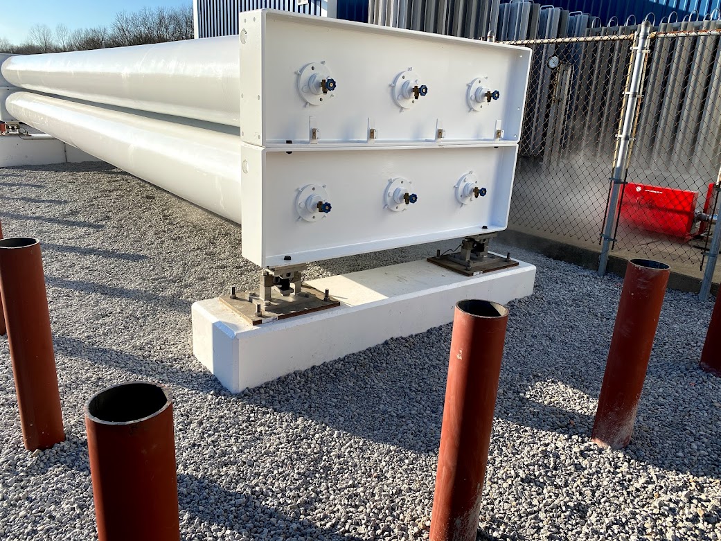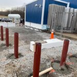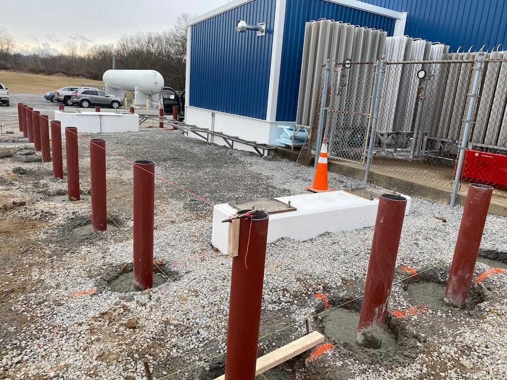 Youngstown Oxygen & Welding Supply partnered with Porter Foundations for the design and installation of four structural concrete piers to hold 80,000 lbs of large Helium steel tanks. Porter was a great fit for the specifications of the job. First, these tanks needed to rest on four piers 50′-0″ apart, and each pier received its own digital scale. There were aesthetic requirements too, which Porter achieved, including the visual effect of absolutely no shims and no grout under the scale bearing.